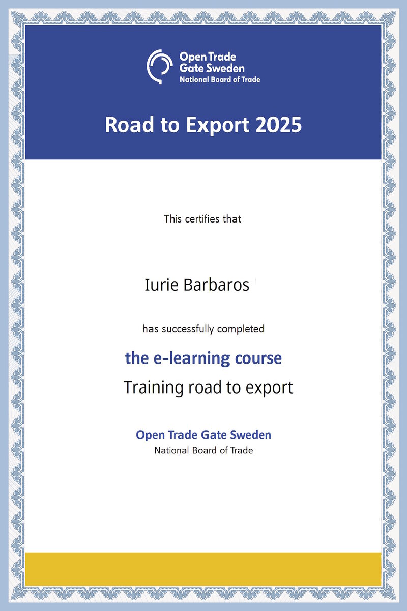 Training road to export Sweden 2025, e-learning course certificate